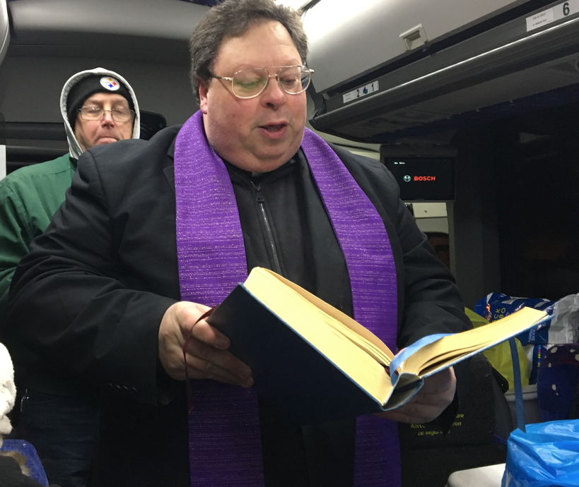 Father Jerry, the pastor at St. Ann's Church, sends the group off with a prayer, a blessing and Holy Water at 6:00am!